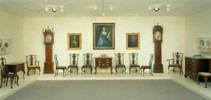 Sewell Biggs’s artistic interests are culminated in the display of his collection in the museum’s galleries. Using the Metropolitan Museum as inspiration, Sewell sought to create a series of galleries, organized on a timeline, that balanced painting, sculpture, architectural elements, furniture, silver and metals, ceramics, and textiles to highlight the important formal qualities the arts shared in the Mid-Atlantic since 18th century.